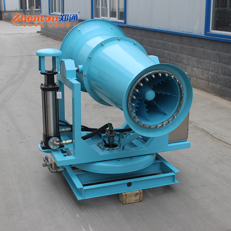 除塵霧炮的工作原理是通過(guò)高壓水泵將水送入噴嘴,形成微細(xì)水霧顆粒。然后,經(jīng)過(guò)風(fēng)機(jī)的作用,水霧擴(kuò)散并散布到空氣中,與空氣中的有害顆粒發(fā)生化學(xué)反應(yīng)或物理作用,從而實(shí)現(xiàn)除塵的效果。水霧顆粒的大小主要取決于噴嘴的設(shè)計(jì)和水泵的壓力控制,一般在10至100微米之間。這樣的微小顆粒有很大的比表面積,能夠更好地吸附和與有害顆粒發(fā)生作用,從而有效地將有害物質(zhì)吸附或沉降下來(lái)。