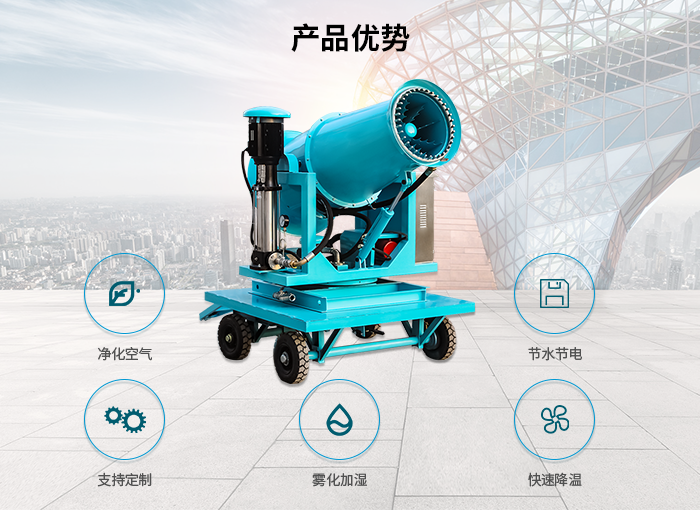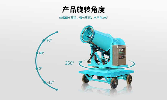 | 型號 | 靜風(fēng)射程 (m) | 風(fēng)機功率(Kw) | 水泵功率 (Kw) | 總功率(Kw) | 俯仰角度 (常規(guī)) | 旋轉(zhuǎn)角度 | 噴頭數(shù)量 | 20米處噪音 (dB) | 箱體重量 (kg) | ||