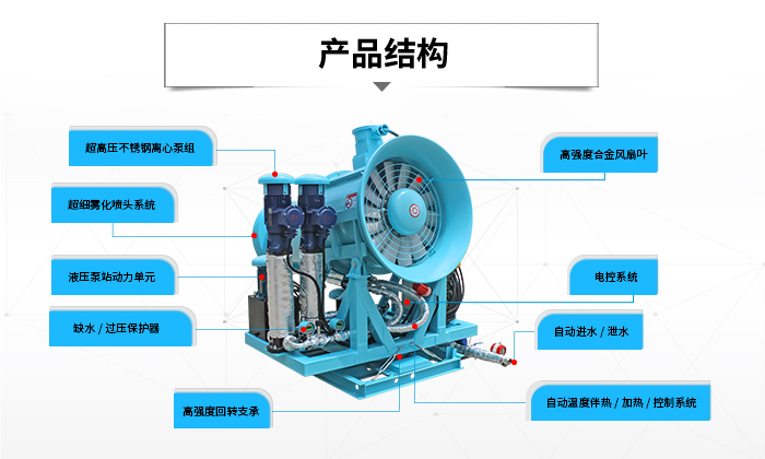 2.噴出的霧粒細小,與粉塵接觸時,形成一種潮濕霧狀體,能快速將粉塵抑制;