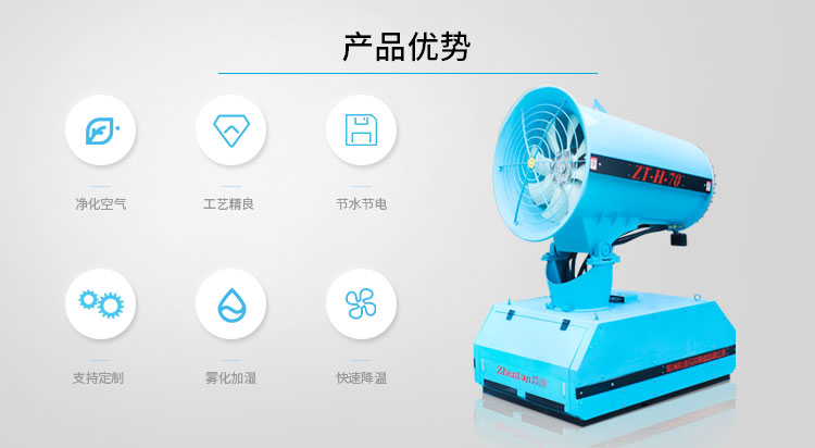 鄭州鄭通風機制造有限公司是一家集研發、制造、銷售為一體的風機專業制造企業。霧炮機噴出的水霧是微米級水霧,它是由水和氣經過在不同壓力、流量控制下,經過特殊的微米級噴霧單元產生的,霧炮使得微米級噴霧的霧粒相互排斥且獨立,提高了與粉塵的結合。