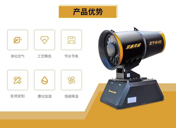 鄭州鄭通風機制造有限公司是一家集研發、制造、銷售為一體的風機專業制造企業。霧炮機噴出的水霧是微米級水霧,它是由水和氣經過在不同壓力、流量控制下,經過特殊的微米級噴霧單元產生的,霧炮使得微米級噴霧的霧粒相互排斥且獨立,提高了與粉塵的結合。